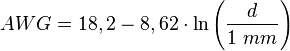 log(D) = (36-AWG)/39*log(92)-log(200)
